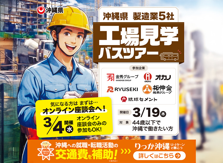沖縄県が働きやすさや社会への貢献など、優れた取り組みをしていると認めた「沖縄県認証制度取得企業」。りっか沖縄ではそんな信頼ある企業の求人情報やイベントも多数ご紹介しています。