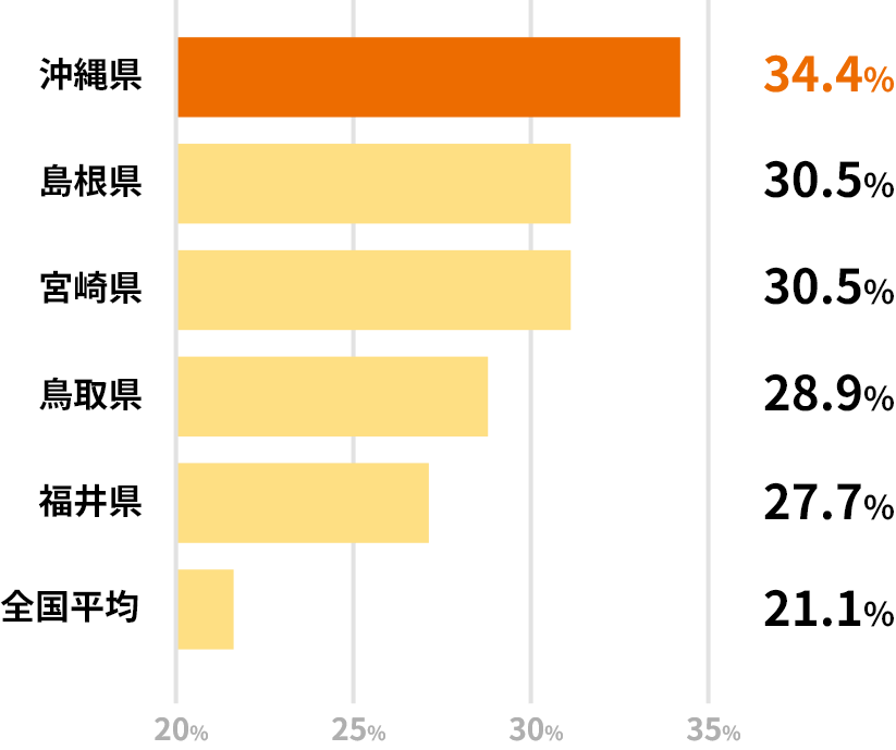 各都道府県の中でも、沖縄県はUターン経験者の割合が全国トップ!生まれ育った沖縄で、もう一度暮らし働きたいと考える人が多いのが特徴です。